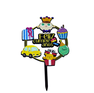 Realza tus celebraciones con el Topper para Pasteles. Disponible en 18 diseños únicos, es la decoración ideal para darle un acabado especial a cualquier pastel, adaptándose a diferentes temáticas y ocasiones.